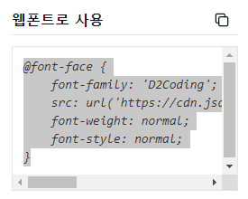 - 사용하고 싶은 글꼴 검색 후 웹폰트로 사용 부분을 복사하면 됨