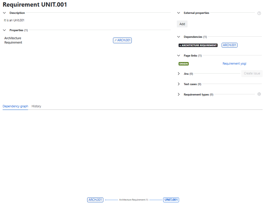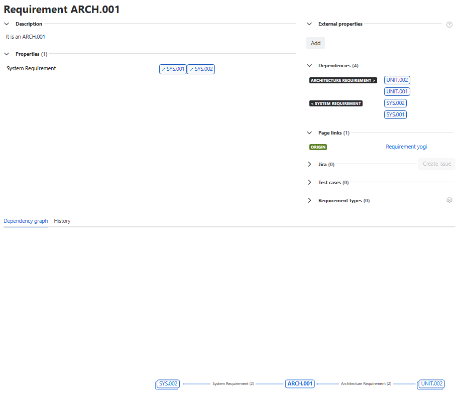 Dependency graph 상 연결 된 ARCH.001을 눌러보면 아래의 Traceability 확인 가능