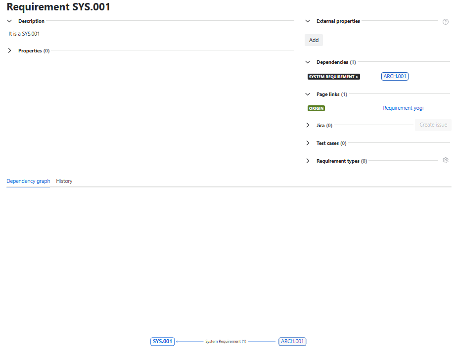 Dependency graph 상 연결 된 SYS.001 눌러보면 아래의 Traceability 확인 가능